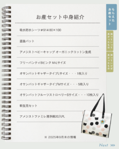 落合病院でもらえる「お産セット」はリラックマのチャック付きバッグ。