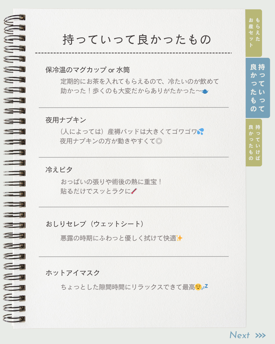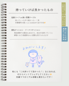 今回は、 落合病院で出産したときの 「持っててよかったもの」「持っていけばよかったもの」 出産後の彼女の話と、薄れてきた私の記憶とをまとめてみました。