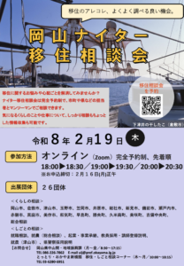 「岡山ナイター移住相談会」は、毎月第3木曜日の夜にオンラインで開催されている移住相談会です。