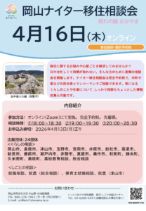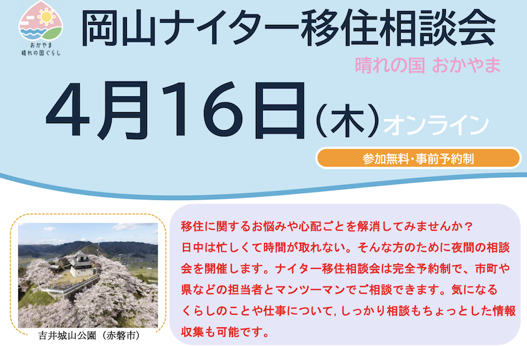 【4/16】岡山ナイター移住相談会|夜にゆったり移住相談しませんか?
