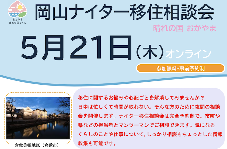 【5/21】岡山ナイター移住相談会|夜にゆったり移住相談しませんか?