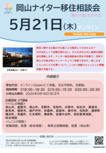 「岡山ナイター移住相談会」は、毎月第3木曜日の夜にオンラインで開催されている移住相談会です。