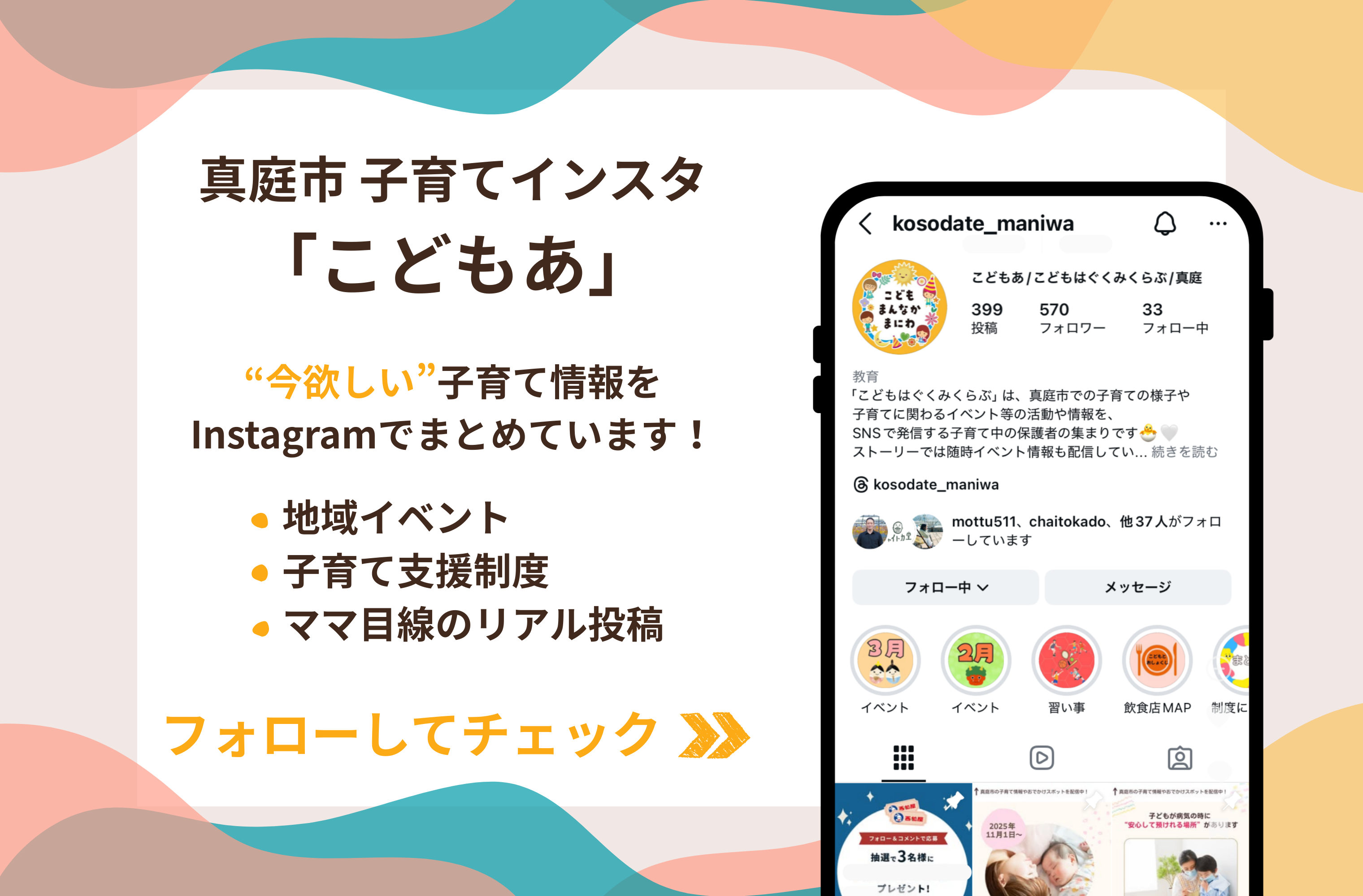 真庭市での子育ての様子や子育てに関わるイベント等の情報は、Instgram「こどもはぐくみくらぶ」をチェック!