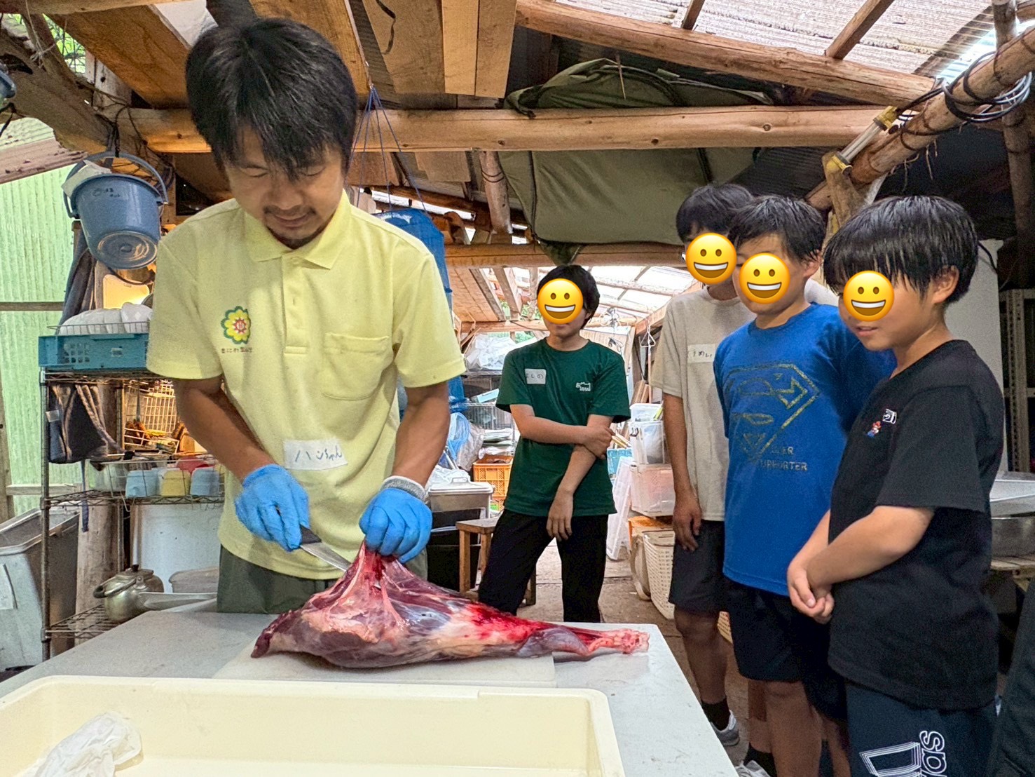 参加者に、命を頂き、食肉になるまでのストーリーを知ってもらうのが目的です。少々生々しいシーンもありますが、興味をもってくれる参加者が多く、嬉しく思います。