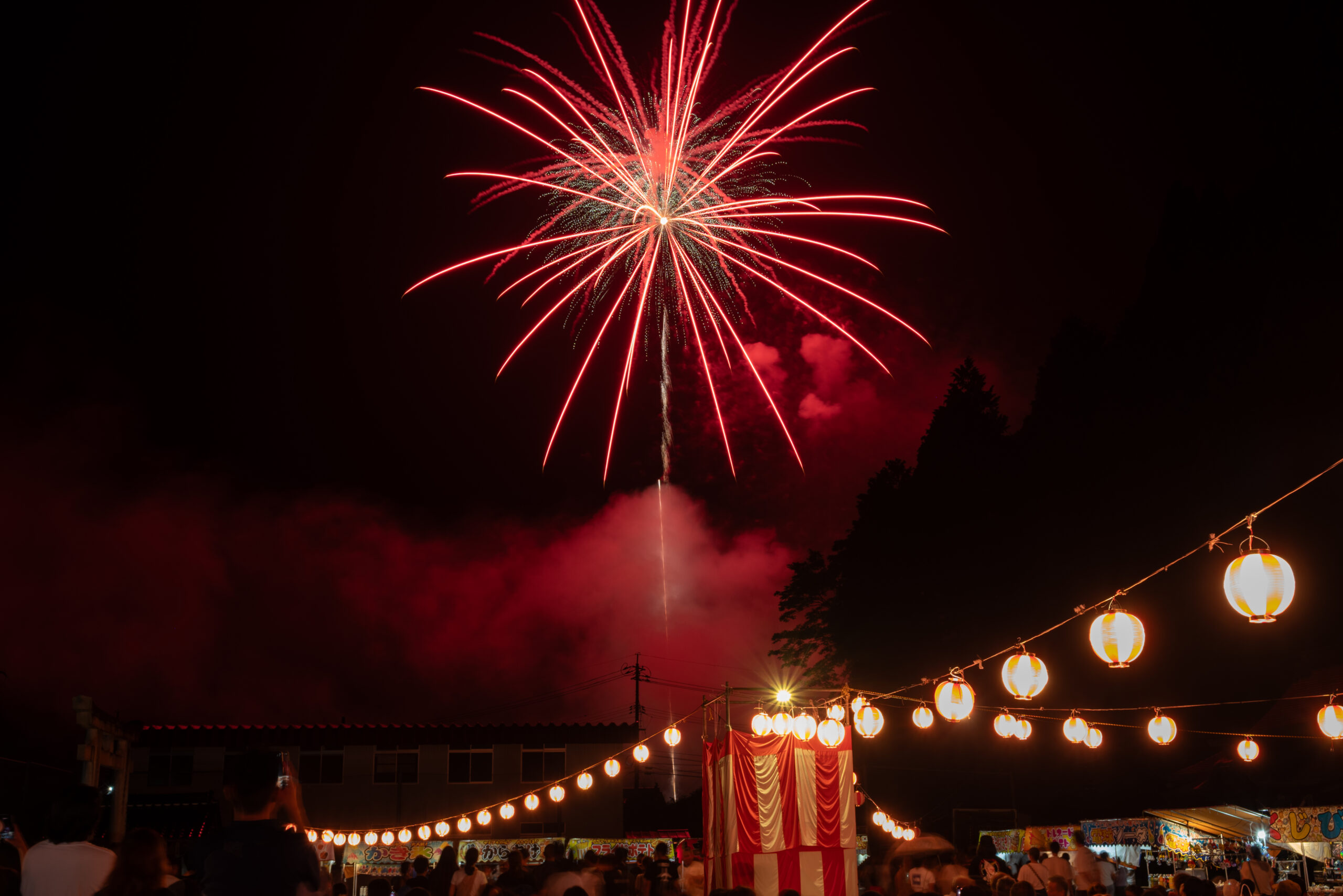 祭りの終盤に上がる花火は圧巻。